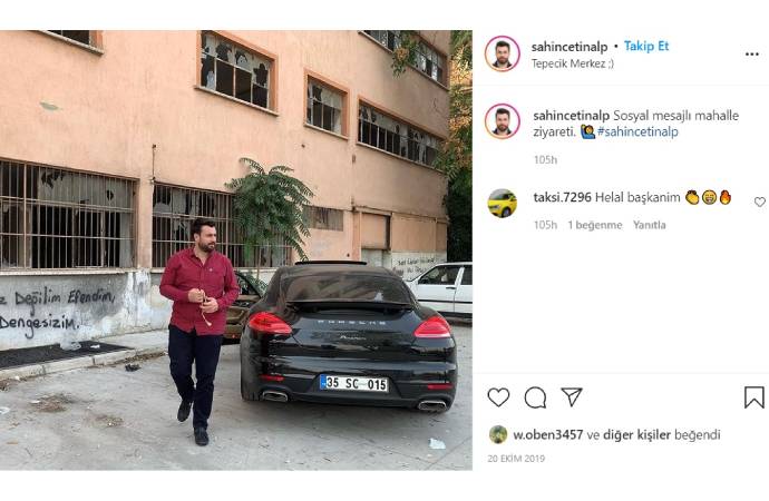 Lüks otomobillerindec'AKP' plakasını kullanan TÜGVA İzmir Karşıyaka temsilcisi Şahin Çetinalp, Karşıyaka’daki çalışmalarıyla tanınıyor. Çetinalp, 'AKP' plaka kullanmasını İnstagram hesabında "Canımız ya da malımız davamızdan değerli olsa bu plakayı kullanmayız" ifadeleriyle açıklıyor.