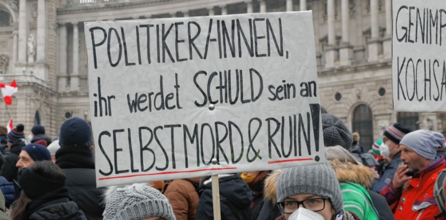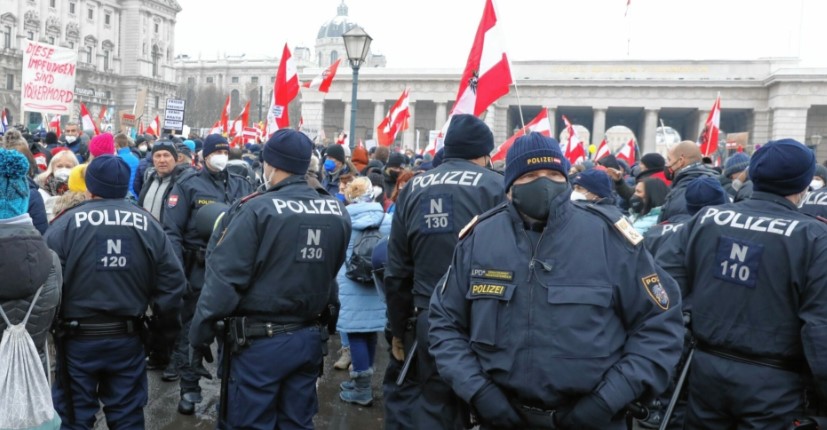 Avusturya'da Covid-19 kısıtlamalarına karşı düzenlenen protestolar devam ediyor. Başkent Viyana'da geçtiğimiz hafta olduğu gibi bu haftada yaklaşık 44 bin kişi sokağa inerek, hükümetin Covid-19'a karşı uyguladığı kısıtlamaları ve hükümetin aldığı zorunlu aşı kararını protesto etti. Göstericiler, sık sık "Biz insanız" ve "Direniş" sloganları atarken, ellerinde ise "Zorunlu aşıya hayır" ve "Çocuklarımızdan elinizi çekin" yazılı pankartlar taşıdı. Yaklaşık bin 400 polisin görev aldığı protestoda, 3 kişinin gözaltına alındığı aktarıldı.