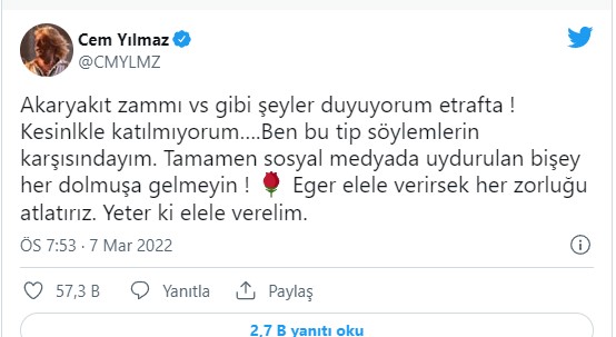 Cem Yılmaz, akaryakıta son günlerde yapılan zamlara ilişkin paylaşımda bulundu.