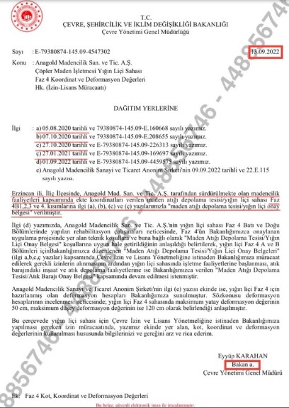 Tarih: 26-02-2024 07:36:35WELG | Yavuzyılmaz'ın bugün X hesabından yaptığı açıklamada, felaketin gerçekleştiği yığın liç sahasının, çamur olarak akan 4. Fazına ait yığın liçi onay belgelerinin dönemin Çevre Bakanı Murat Kurum imzasıyla verildiğini belirtti. Açıklamasında, bu tespitin 13 Eylül 2022 tarihli Çevre Bakanlığı resmi belgesinden yapıldığını kaydetti.