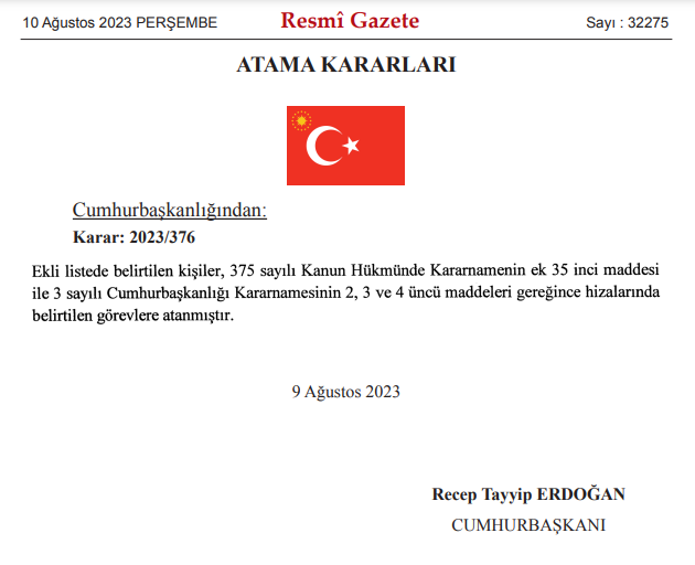 Tarih: 10-08-2023 08:42:21WELG | Erdoğan, 57 ile yeni vali atadı: AFAD Başkanı Edirne Valisi oldu