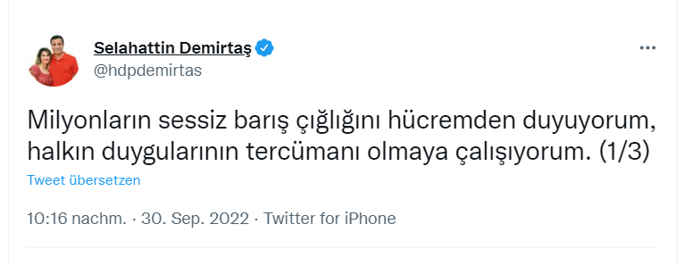 Demirtaş, Twitter hesabından yaptığı ikinci açıklamada ise şu ifadelere yer verdi: