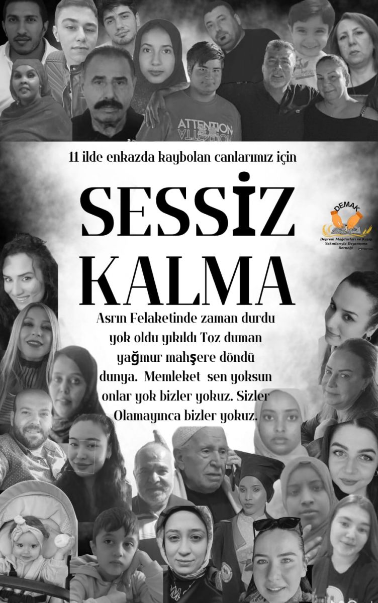 Deprem Mağdurları Ve Kayıp Yakınlarıyla Dayanışma Derneği olarak kayıp ailelerinin sesi olmak için bizler, tüm kayıplarımızın ve deprem mağdurların yanında olacağız ve her alanda mücadelemizi sürdüreceğiz. Sadece bu konuda yetkilerin sesimizi duymasını ve kayıp yakını ailelerin seslerine kulak verip isteklerini yerine getirmelerini istiyoruz.