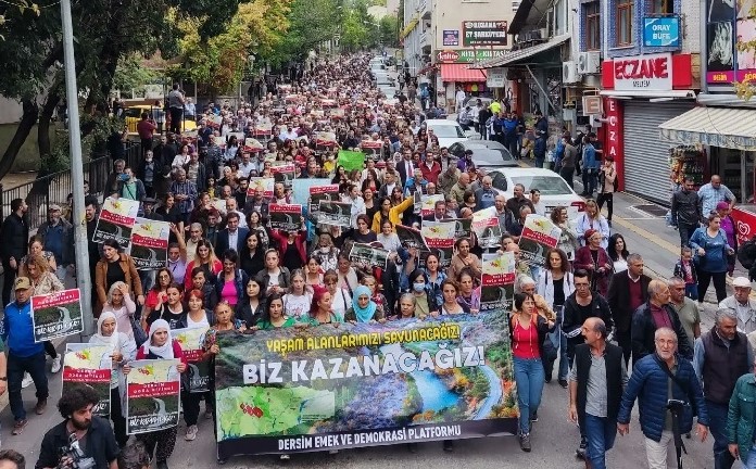 Açıklamada, "Dersim doğası, yeraltı ve yerüstü kaynakları uzun zamandır saldırılarla karşı karşıya. Barajlar, HES'ler, Altın ve 4. grup madenlere dair açılan sahaların 13'üü Pülümür, 14'ü Ovacık, 4'ü Merkez, diğer İlçeler ise daha az olmak üzere toplamda 40'a yakın saha bulunmakta. Bu durum yaban hayatına, suya, havaya, kutsal mekânlarımıza, küçükbaş hayvanımızın ve arılarımızın alanlarına ve toplamda 2 bin ailemizin geçimine saldırılıyor.