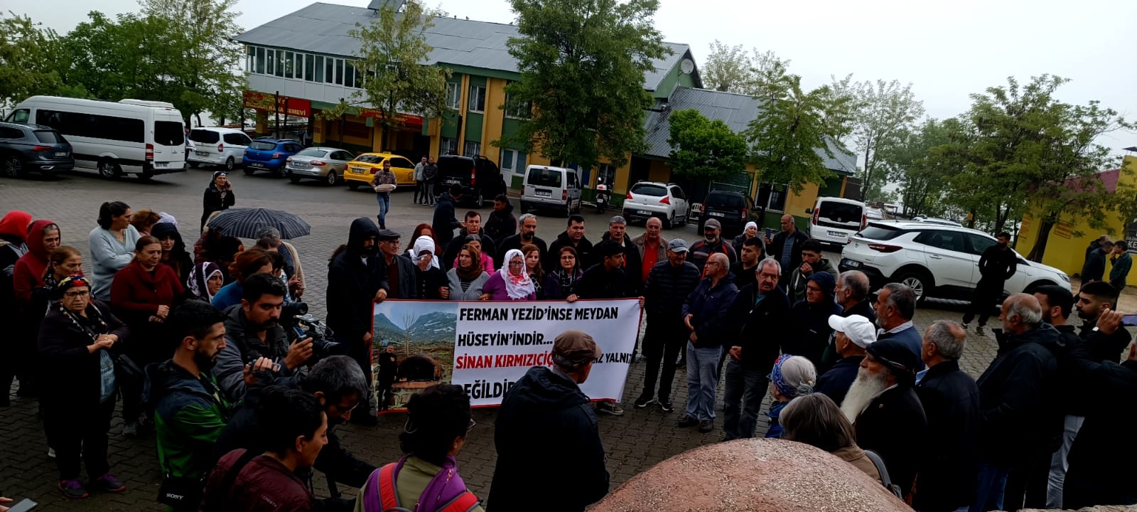 Açıklamada ilk sözü Düzgün Baba Cemevi Başkan Yardımcısı Musa Demirtaş aldı. Demirtaş, Kırmızıçiçek’in demokrasi, insan hakları ve Alevilerin eşit yurttaşlık mücadelesinde emek verdiğini belirterek Nazımiye Kaymakamı'nın Kırmızıçiçek’i tehdit ettiğini hatırlattı. Demirtaş, “Sinan Kırmızıçek şahsında Alevi örgütlülüğün Alevilerin eşit yurttaşlık mücadelesi cezalandırılmak istenmektedir. Bu cezayla Alevi toplumu ve kurumlarına gözdağı verilmek isteniyor, bu cezayı kabul etmiyoruz. Bizim açımızdan bu ceza yok hükmündedir.” ifadelerini kullandı.