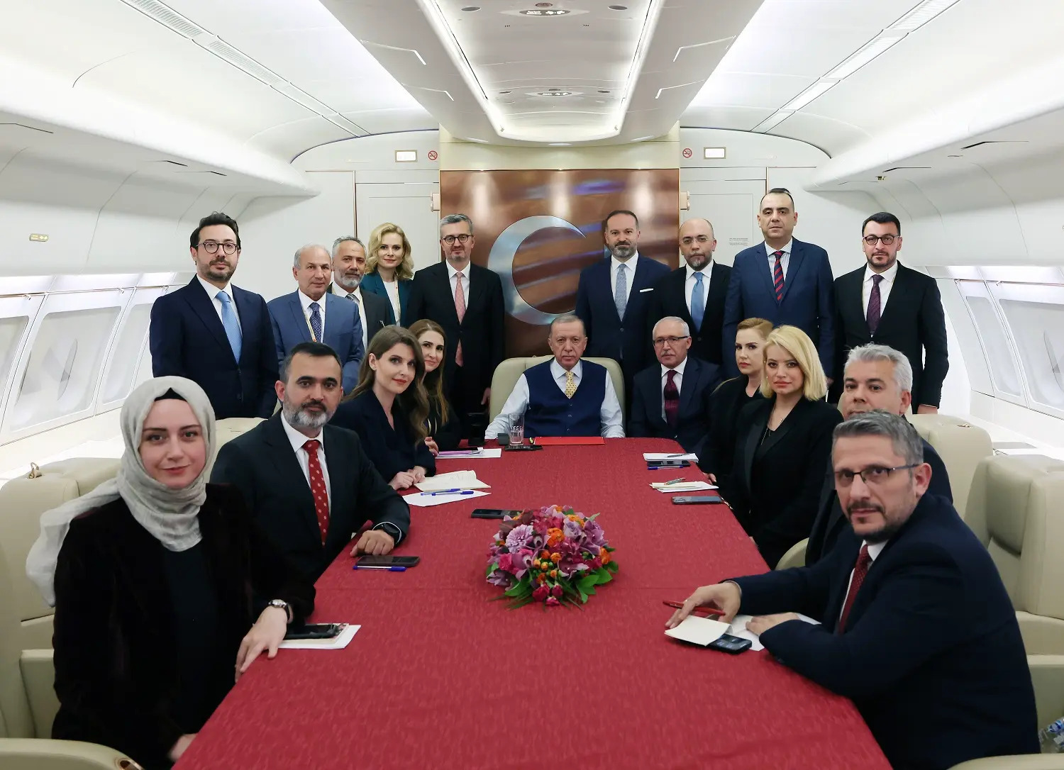 Sonrasında Kazan’dan bindiği uçakta, Türkiye’ye bir grup gazeteci (!) ile bindi.