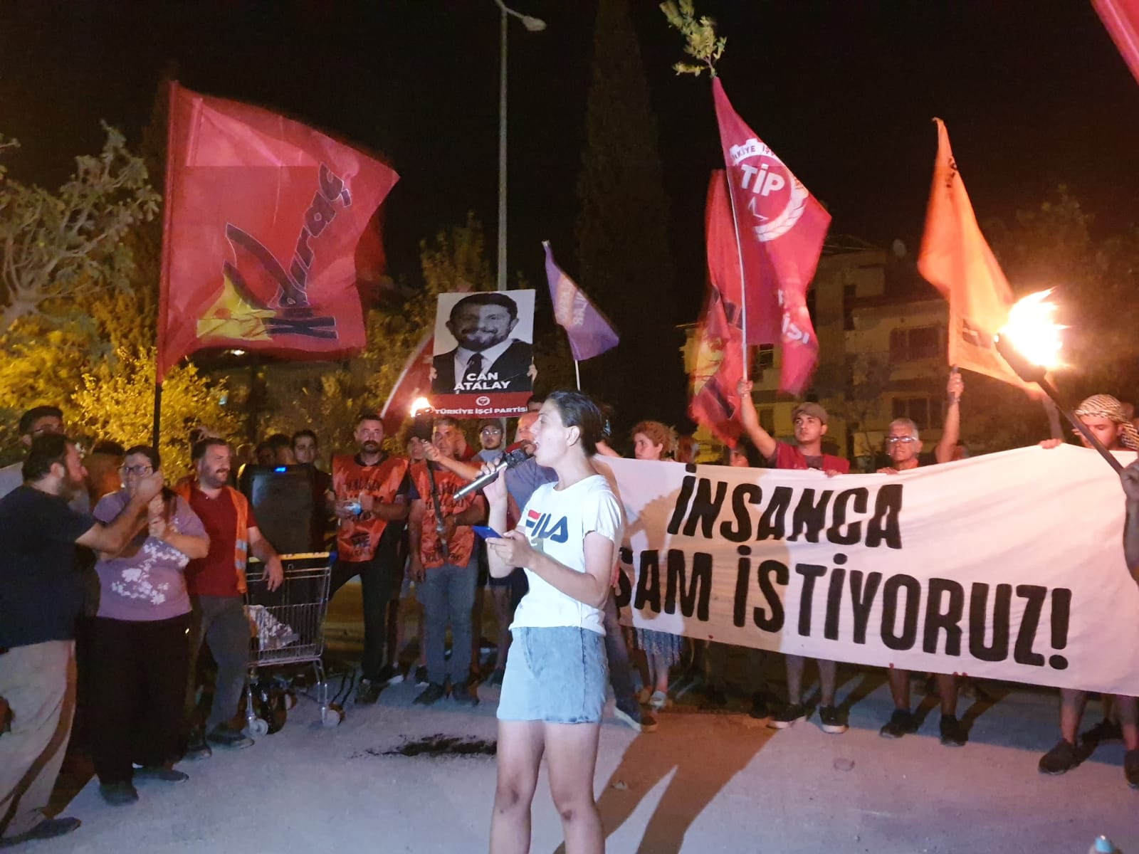 “Adalet Hatay’ın elleriyle gelecek” sloganının ardından Can Atalay’ın gönderdiği mesaj okundu. “Can çıkacak Hatay’ın hesabı sorulacak” sloganı atıldı. Can Atalay’ın mesajı “Bu mücadeleyi beraber yürüteceğimiz günler yakındır” diye bitti.