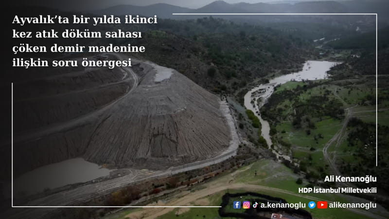 Kenanoğlu, Ayvalık’ta bir yılda ikinci kez atık döküm sahası çöken demir madenine ilişkin Enerji ve Tabii Kaynaklar Bakanı Fatih Dönmez’in yanıtlaması için verdiği soru önergesinde şu ifadelere yer verdi: