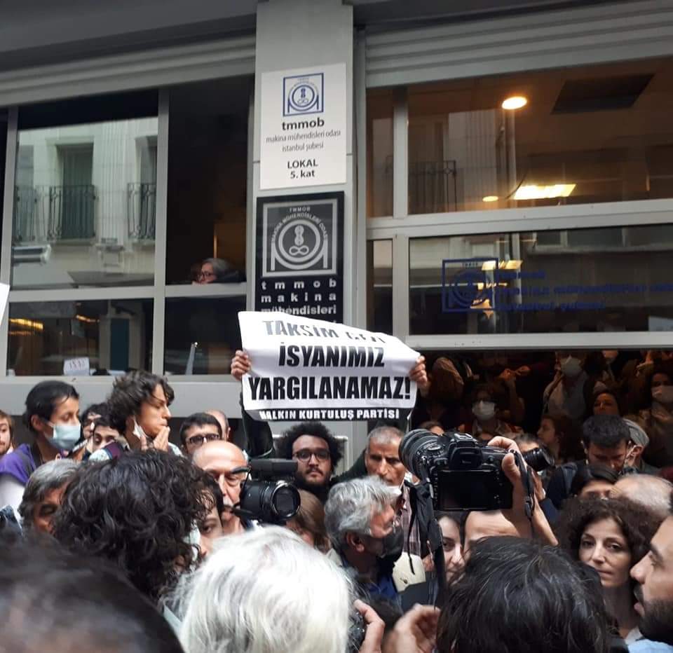 TMMOB Makina Mühendisleri Odası (MMO) İstanbul Şubesi önünde bir araya gelen göstericiler burada bir basın açıklaması okudu.