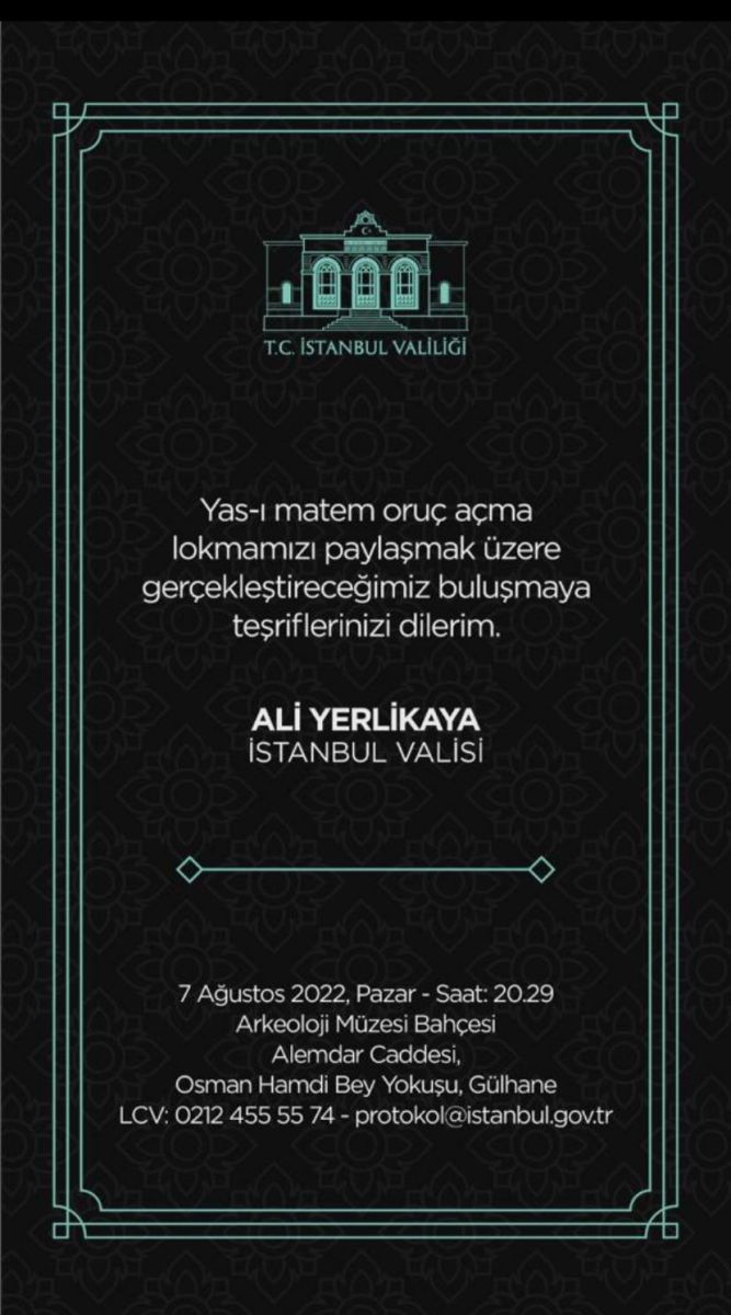 İşte İstanbul Valisi Ali Yerlikaya imzalı davetiye: