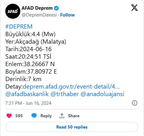 Yetkililer, depremin ardından herhangi bir can veya mal kaybı olmadığını belirterek, vatandaşları tedbirli olmaya çağırdı. Depremle ilgili gelişmeler yakından takip ediliyor.
