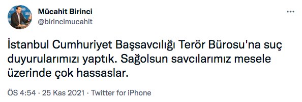 İstanbul Cumhuriyet Başsavcılığı’na suç duyurusunda bulunduğunu duyuran Birinci, şunları yazdı: