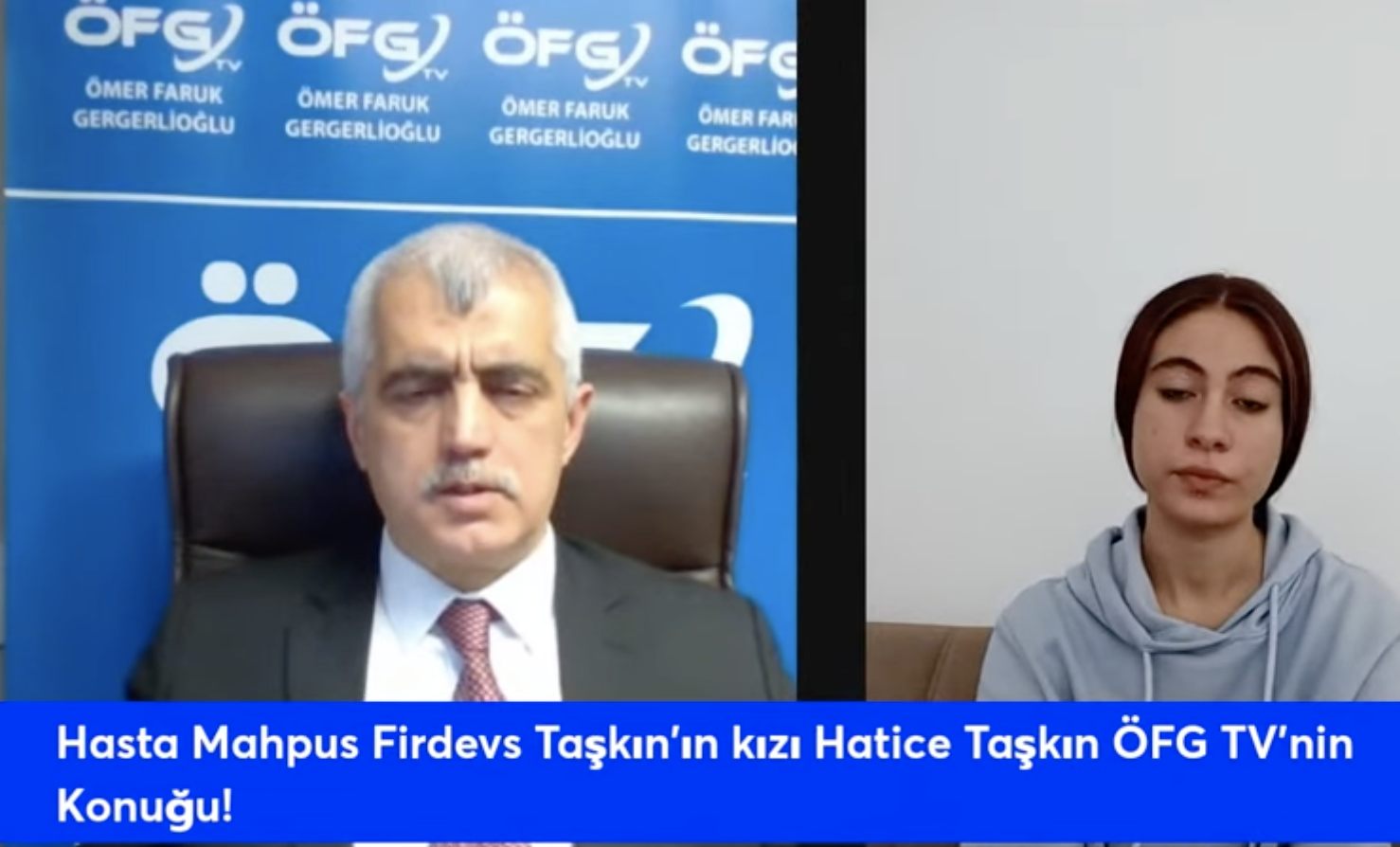 Değerli izleyenler ÖFG TV'nin ikinci bölümünde de hasta mahpuslar ile ilgili önemli bir konumuz ve konuğumuz var. Hasta mahpuslar çok önemli bir konu. Geçtiğimiz hafta cezaevlerinde 5 kişinin ölüm haberini aldık. Artık cezaevindeki ihlaller sayılmakla bitirilmiyor, biz cezaevi ihlallerini Adalet Bakanlığı'na duyuruyoruz ama Adalet Bakanlığı son derece duyarsız ve sonunda maalesef mahpusların ölüm haberleri veya Allah korusun intihar haberleri ile şok oluyoruz, bugün de bir hasta mahpus bir anne Firdevs Taşkın'ı konu edeceğiz. Firdevs Taşkın'ın kızı Hatice Taşkın bize annesinin sağlık durumu ile ilgili hasta mahpusluğu ile ilgili yaşadığı sıkıntılar ile ilgili bize bilgi verecek, çocukların yaşadığı sıkıntılar ile ilgili bilgi verecek, yargılanma nedenleri ve aldığı ceza hakkında bilgi verecek ama bizim için en önemlisi hasta mahpus olarak yaşadığı sıkıntılar Firdevs hanımın. Görüşlerde anlattıkları, koğuşunda yaşadıkları tüm bunları biz bugün Firdevs Taşkın hasta mahpusun kızı Hatice Taşkın'dan dinleyeceğiz. Hatice Taşkın bizim programımızda.