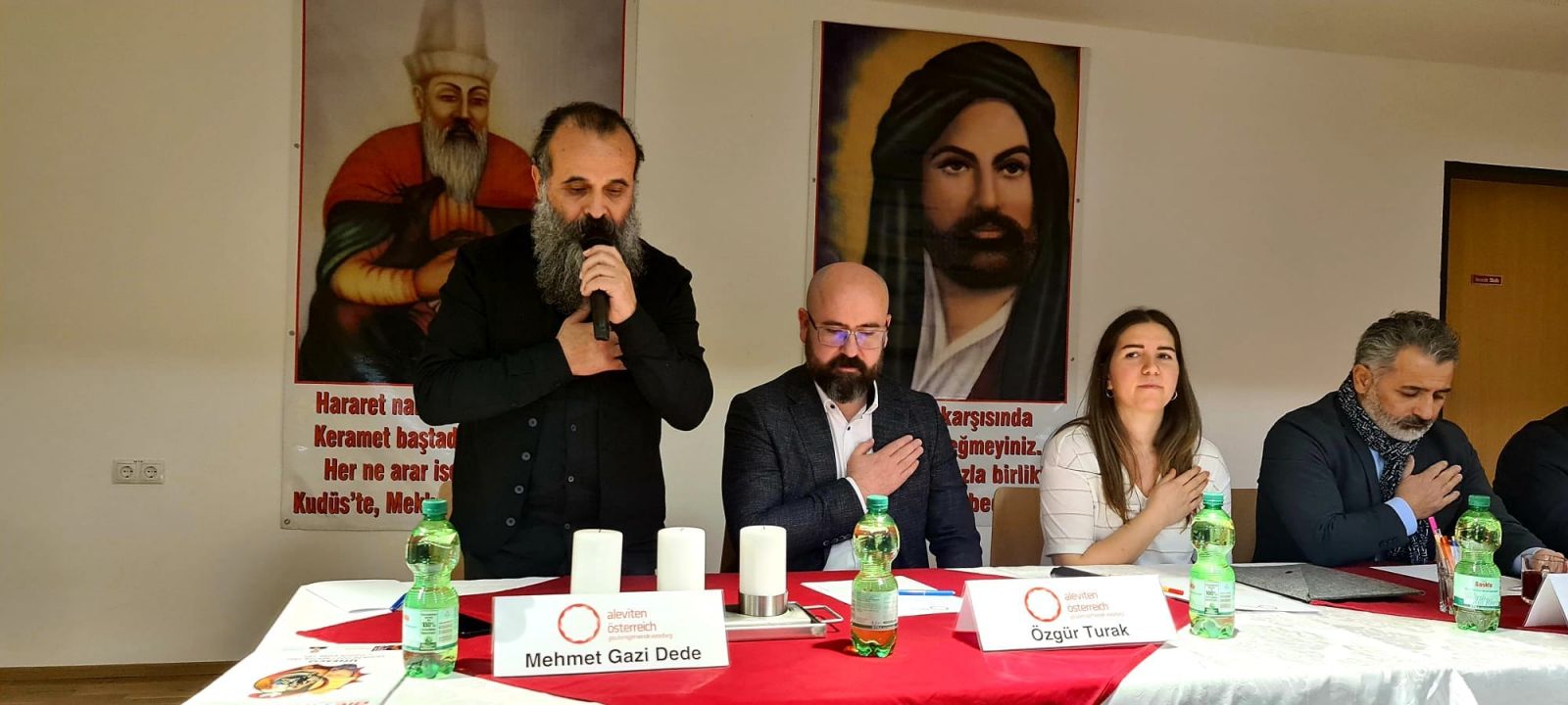 Avusturya Alevi Birlikleri Federasyonu İnanç Kurulundan Mehmet Gazi de, Avusturya olarak, Alevilikle ilgili her türden çalışmalarımızı, Uluslar arası Alevilerin gözüne girmeyi başardık. Avusturya ile ilgili, Alevi olmayan bir takım Örgütlenmeler hakkında Arkadaşlarım görüşler sundular. Bunlar doğru Söylem ve hanemize yazılan kazanımlar oldu. Bende naçizane konuşmamı, Alevi ritüelleri Üzerine olacak. Örneğin, Alevi’ce Ekranlar üzerinde bir dizi asimilasyon çalışmaları ile yolumuza göz koyanlar vardır. Cenaze ekranlarımızı İnsan yerine Kâbe’yi başka yerlerde ariyan, Kıblesini şaşıranlarla karşı karşıyayız. Bugün Bizler Avusturya Alevi Birlikleri Federasyonu İnanç kurulu olarak, Etki ve baskılara aldırış etmeksizin, Bildiğimiz ve gördüğümüz şekli ile, önüne ve arkasına hiç bir başlık eklemeden Alevi’ce Cenaze ekranlarımızı yapmaya çalışıyoruz. Bu çalışmalarımızı gören veya izleyen bir Çok Avrupa Ülkesinde ve Türkiye’de Ciddi destekler almaktayız. Avusturya olarak kendi Federasyon’unun ve İnanç kurulumuzun adından bahsettiriyoruz. Onun için verdiğiniz desteklerle yolumuz ve işlevimiz hak katında yazılıyor ve yazmaya da devam ediyoruz dedi.