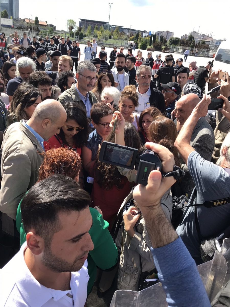Basın açıklamasına izin vermeyen polis aralarında Sol Parti Başkanı Alper Taş, DİSK Basın Başkanı Faruk Eren ve Yalçın Köse ile Cumartesi Annelerinin olduğu yaklaşık 15 kişiyi darp ederek gözaltına aldı.