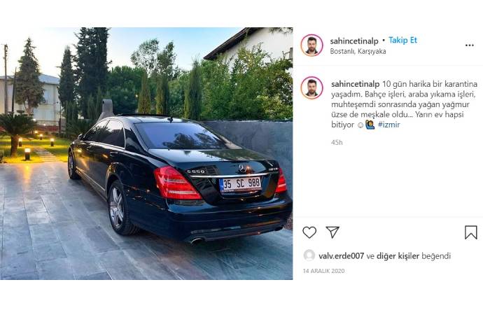 Zenginliği dikkat çeken Çetinalp'in, AKP plakasını başka modelde bir arabasında da kullandığı görüldü. Çetinalp, konuya ilişkin bu kez de şöyle yazdı: "İzmir'de bu plakayı taşımak şereftir benim için."