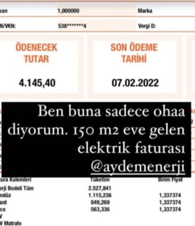WELG- 4 bin 100 TL gelen elektrik faturasını sosyal medya hesabından paylaşan ünlü oyuncu Seray Sever, "Ben buna sadece oha diyorum. 150 metrekare eve gelen fatura" notunu düşerek tepkisini dile getirdi.