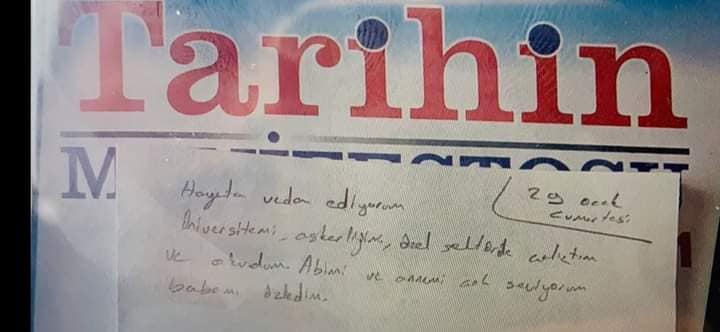 Öte yandan Mustafa Kaya yaşamına son vermeden önce bıraktığı bir nota “Hayata veda ediyorum. Üniversitemi, askerliğimi, özel sektörde çalıştım ve okudum. Abimi ve annemi çok seviyorum, babamı özledim” şeklinde bir not bıraktığı öğrenildi.