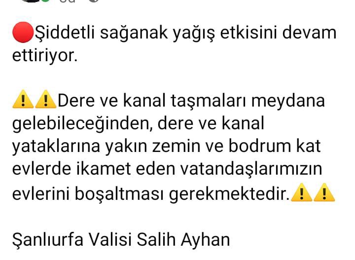 Siverek, Hilvan, Suruç ve Viranşehir ilçeleri ile kent merkezinde sağanak yağış sele dönüştü. Yağış dolayısıyla birçok ev ve işyeri su altında kaldı. Ev ve işyerlerine giren sular vatandaşlar ve belediye ekiplerince tahliye edildi. Göle dönen cadde ve sokaklarda trafik akışında aksaklıklar yaşandı. Kent merkezi ve ilçelerinde etkili olan sağanak yağış nedeniyle ekili tarım arazileri de sular altında kaldı.