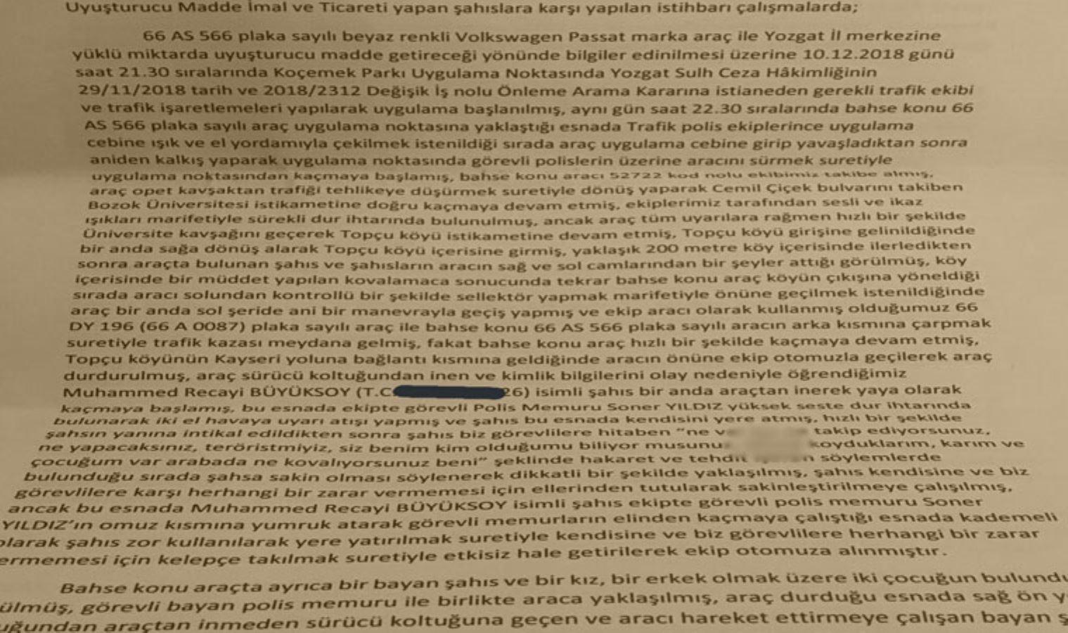 Gazeteci Metin Cihan'ın sosyal medya hesabından paylaştıklarına göre, narkotik ekipleri, Aralık 2018'de şüpheli bir aracın önünü kesti. Araçtan inen Muhammed Recai Büyüksoy, yaya olarak kaçmaya çalıştı. Polis ekiplerinin havaya ateş açması üzerine yere yatan Büyüksoy, ekiplere "Siz benim kim olduğumu biliyor musunuz? A... koyduklarım" diyerek hakaret etti.