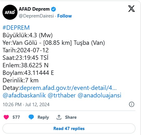 Van, geçmişte de depremlerle sarsılmış bir bölge olduğundan, bu tür olaylarda hızlı ve etkin bir şekilde harekete geçmek için gerekli hazırlıklara sahiptir. Şu ana kadar herhangi bir olumsuzluk bildirilmemesi, yerel halk ve yetkililer için sevindirici bir gelişme oldu.